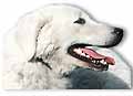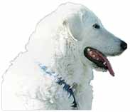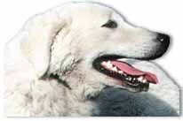 Das Schädeldach dieses sehr erfolgreichen erwachsenen Rüden ist vorbildlich flach und gibt dem Kopf das typische trocken-harte Kuvasz-Profil. Gut zu sehen ist auf diesem Photo der ebenfalls im Standard explizit gewünschte, ausdrucksvolle Kragen. Die Ohren - auf diesem Photo nicht gespitzt - sind geringfügig zu lang, aber was im Leben ist schon perfekt... Ausgezeichnet dagegen sind die Pigmentierung und die schmalgeschnittenen Augen mit den gut anliegenden Augenlidern. Pigmentmangel an Nasenspiegel, Lefzen- und Lidrand gehören ebenso wie ein ausgeprägter Stop und Fehlbildungen der Augenlider (Entropium/Ectropium) gehören zu den zuchtausschließenden Fehlern!