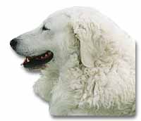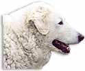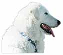 "Der Kopf des Kuvasz ist charakteristisch keilförmig, in Harmonie mit dem Körper, gefällig, edel und strahlt eine beträchtliche Kraft aus. Der Kopf ist charakteristisch hager und trocken. Von den verwandten Rassen kann der Kuvasz hauptsächlich durch die Form des Kopfes unterschieden werden. Der Kopf des Rüden ist etwas robuster als derjenige der Hündin." (FCI-Standard, Allgemeine Beschreibung des typischen Kuvasz-Kopfes)