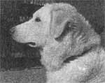 Zum Vergleich: Eine ///junge??? Hündin aus der heute leider kaum mehr zugänglichen Darstellung von Dr. Erna Mohr über "Ungarische Hirtenhunde" (S. 30): "'Varbogyai Pirosha'; Z. u. Bes. Prof. K.V. Antal, Voorschooten Niederlande. - Fanglänge: 45,5 %, geringer Stopp, normal gewölbter Schädel".
